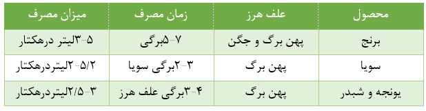جهت کاربرد بنتازون در برنج ابتدا باید آب مزرعه تخلیه شود.در برخی موارد به منظور افزایش میزان تاثیر علف کش از مواد روغنی (به عنوان ماده افزودنی همرا علف کش)استفاده میشود. درصورت تشنگی گیاه حتی باوجود شبنم روی آن یا احتمال بارندگی و یخبندان مصرف این علفکش توصیه نمی شود.چناچه علف کش هایی مانند :متری بوزین به صورت قبل از کاشت یا پیش رویشی در سویا مورد استفاده قرار گرفته باشند در صورت کاربردبنتازون در مرحله بعد احتمال مشاهده گیاه سوزی در سویا افزایش خواهد یافت. این علف کش نباید در حرارت درجه بالای ۲۱درجه سانتی گراد مصرف شود. در صورت لزوم سم پاشی باید تا بعد از ظهر به تاخیر بی افتد در شرایط گرم ممکن است بعضی ارقام حساسیت بیشتری نشان دهند.از بادبردگی علف کش روی لوبیا و خیار، عدس، خردل، کلزا، چغندر قند و آفتاب گردان باید جدا اجتناب نمود. وقوع بارندگی چهار تا هشت ساعت پس از سم پاشی باعث کاهش تاثیر علف کش می شود. حشره کش هارانباید تا هفت روز بعد از تیمار با بنتازون بکاربرد.